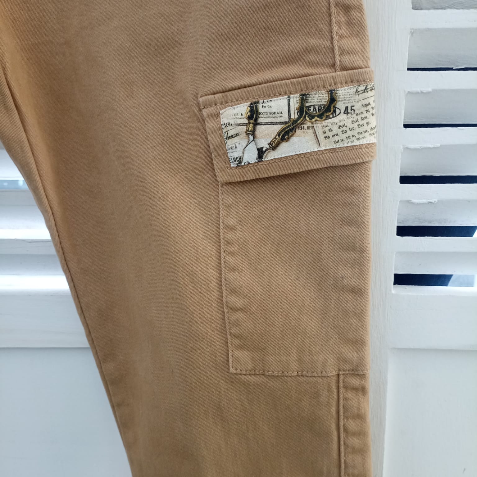 Prenda irrepetible y exclusiva forma parte de la colección exclusiva "Mezclilla de André" que interviene desigualmente cada pieza una por una, en este caso con aplicaciones en tela al tono y bolsillos laterales. Se puede pagar vía web-pay de Transbank hasta en 12 cuotas sin intereses.
