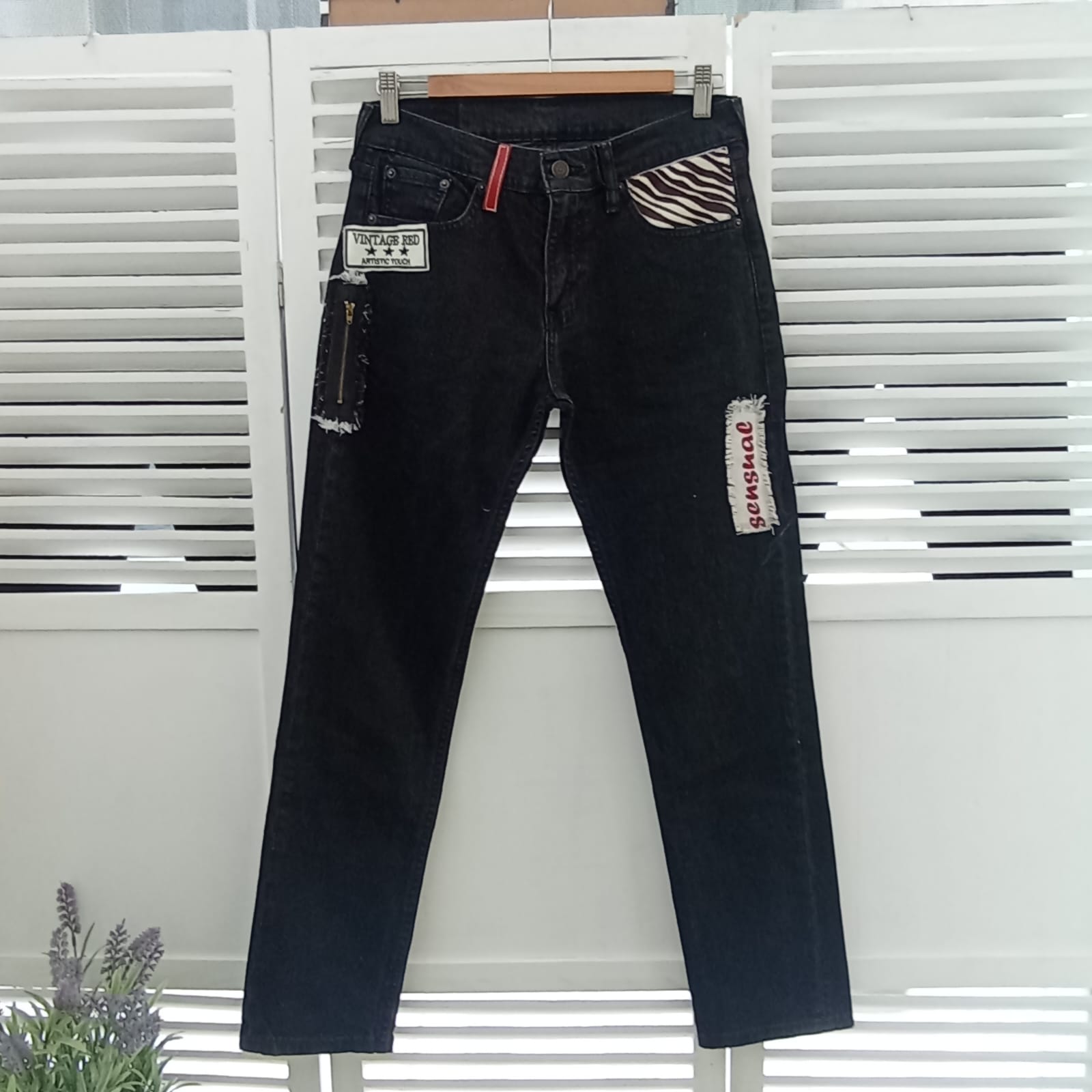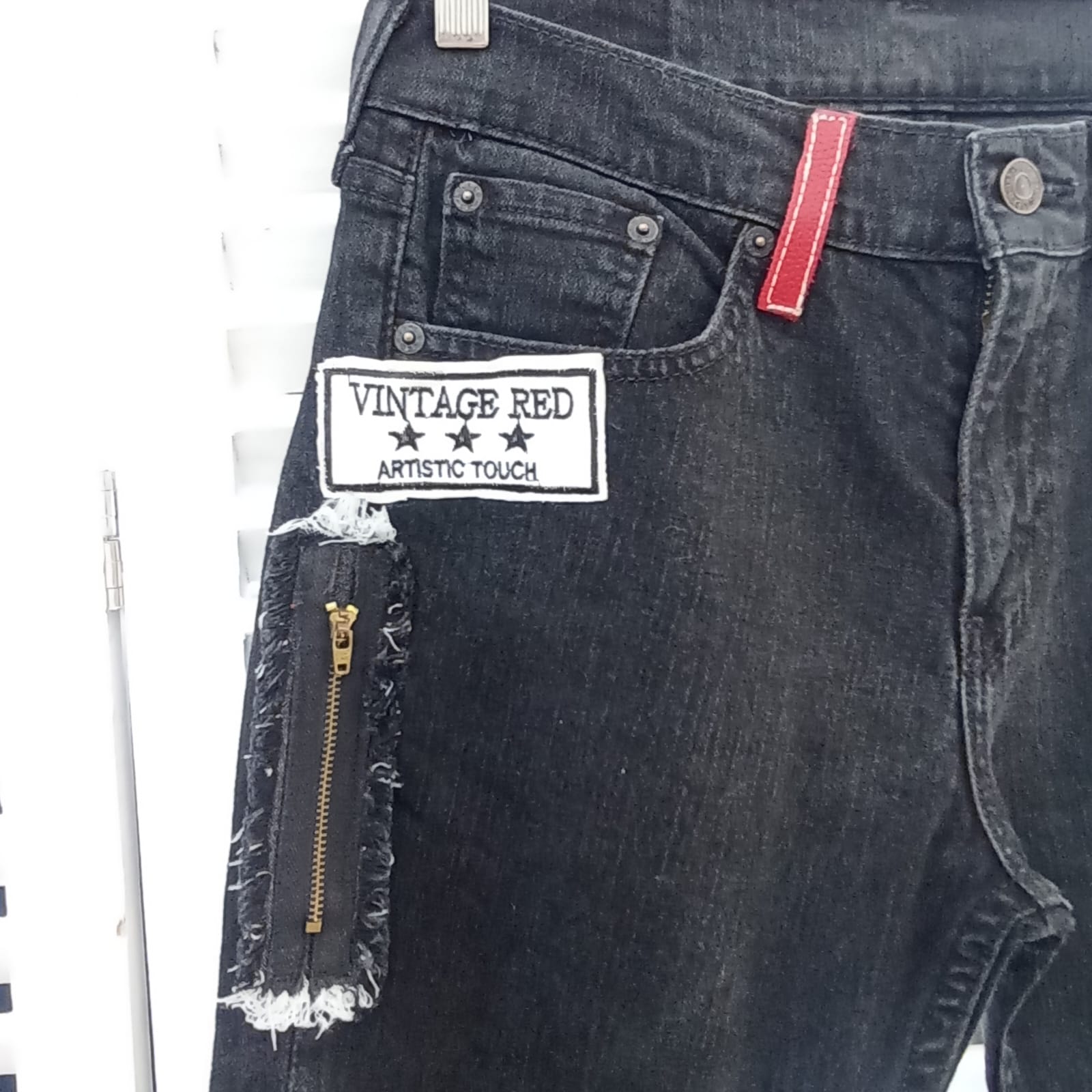 Prenda exclusiva forma parte de la colección "Mezclilla de André" que interviene desigualmente cada pieza una por una, en este caso con bordado, aplicaciones en tela y cierre decorativo. Se puede pagar vía web-pay de Transbank hasta en 12 cuotas sin intereses.