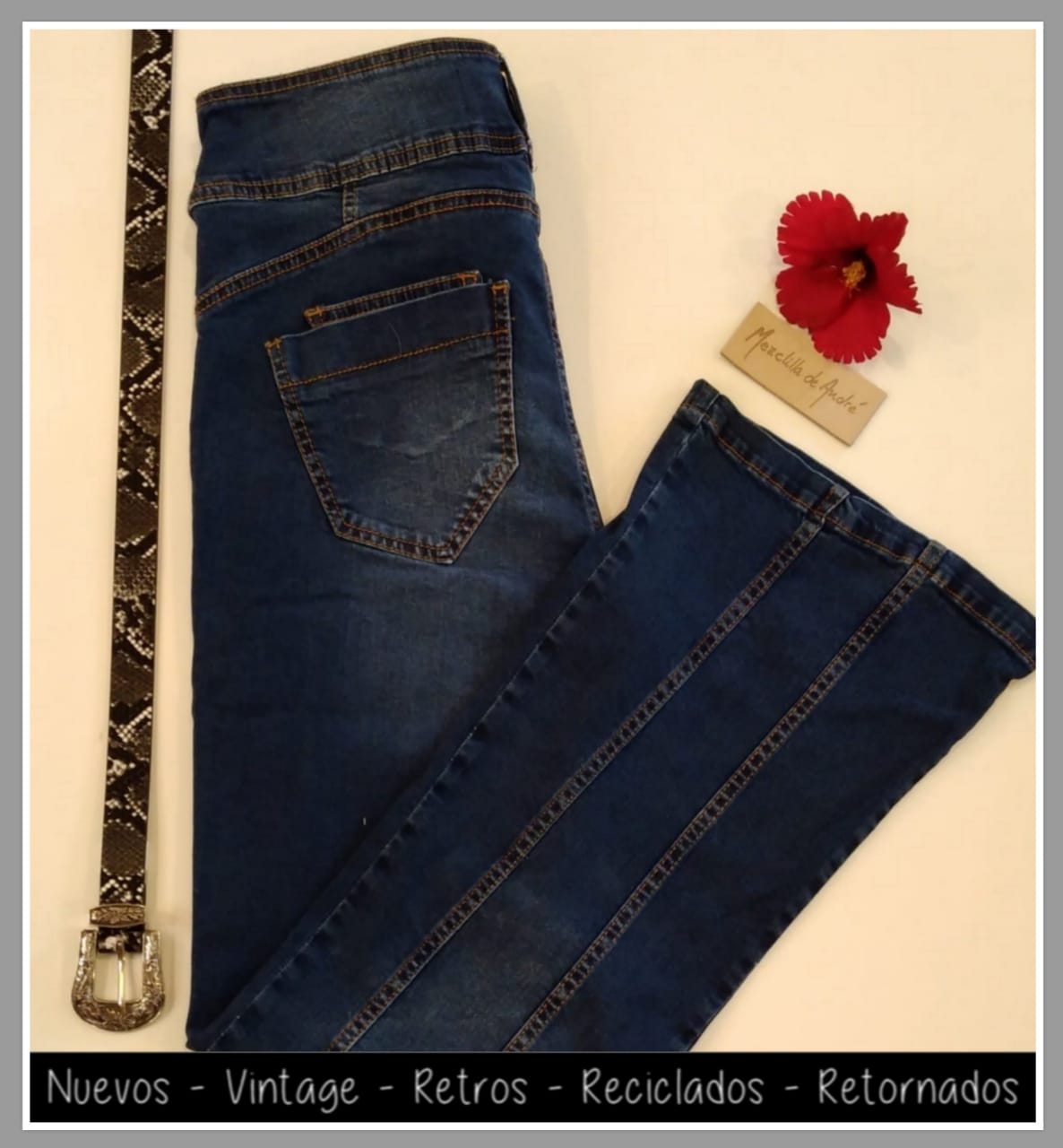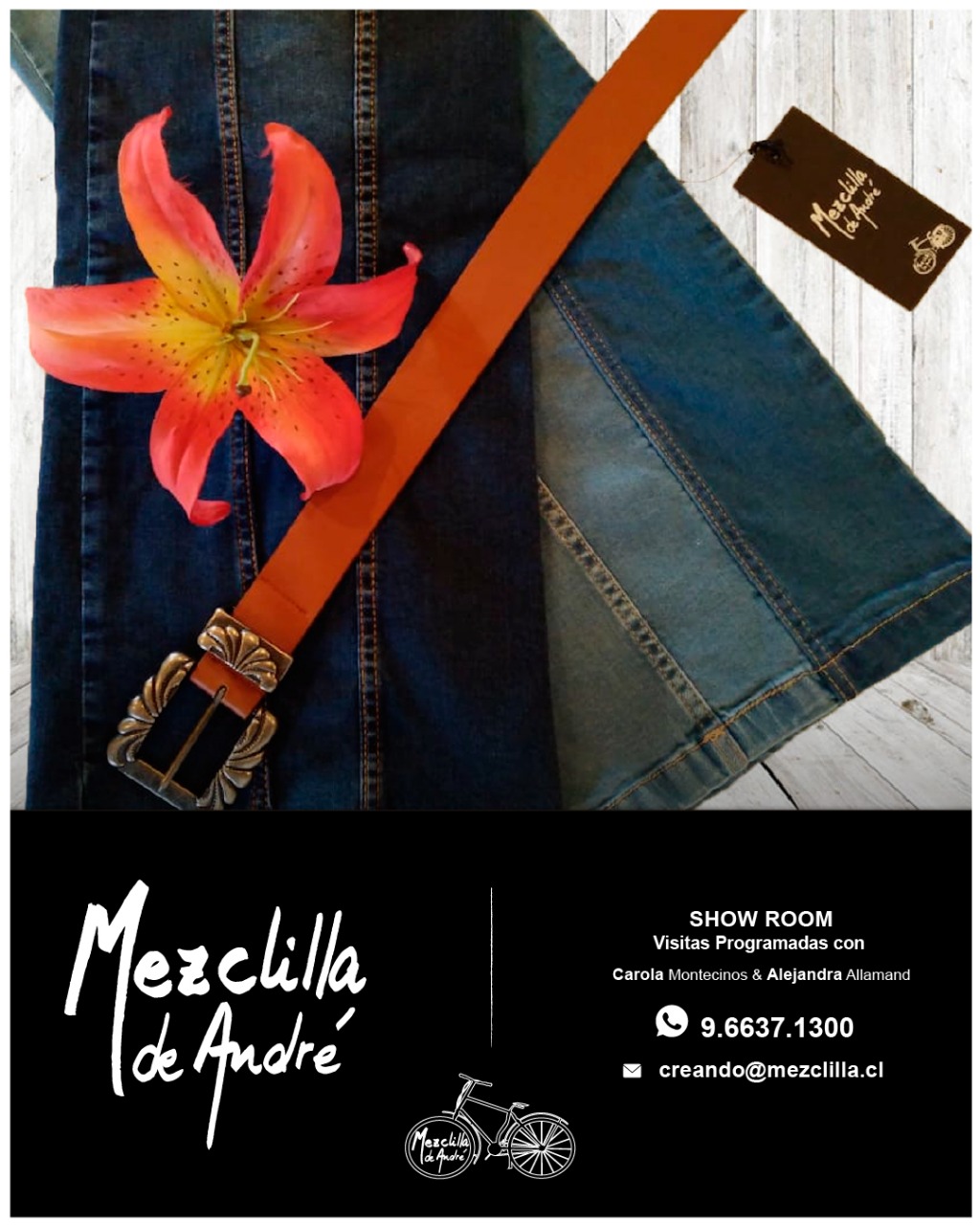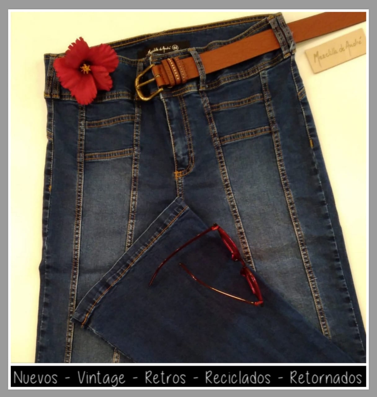 Porque el estilo no tiene talla ni edad, la colección en serie de “Mezclilla de André” presenta este modelo de tiro alto, líneas verticales y terminación acampanada, en tallas de la 40 a la 52, todos en dos colores de mezclilla: Uno celeste combinado y otro en azul índigo. Se pueden pagar vía web-pay de Transbank hasta en 12 cuotas sin intereses.